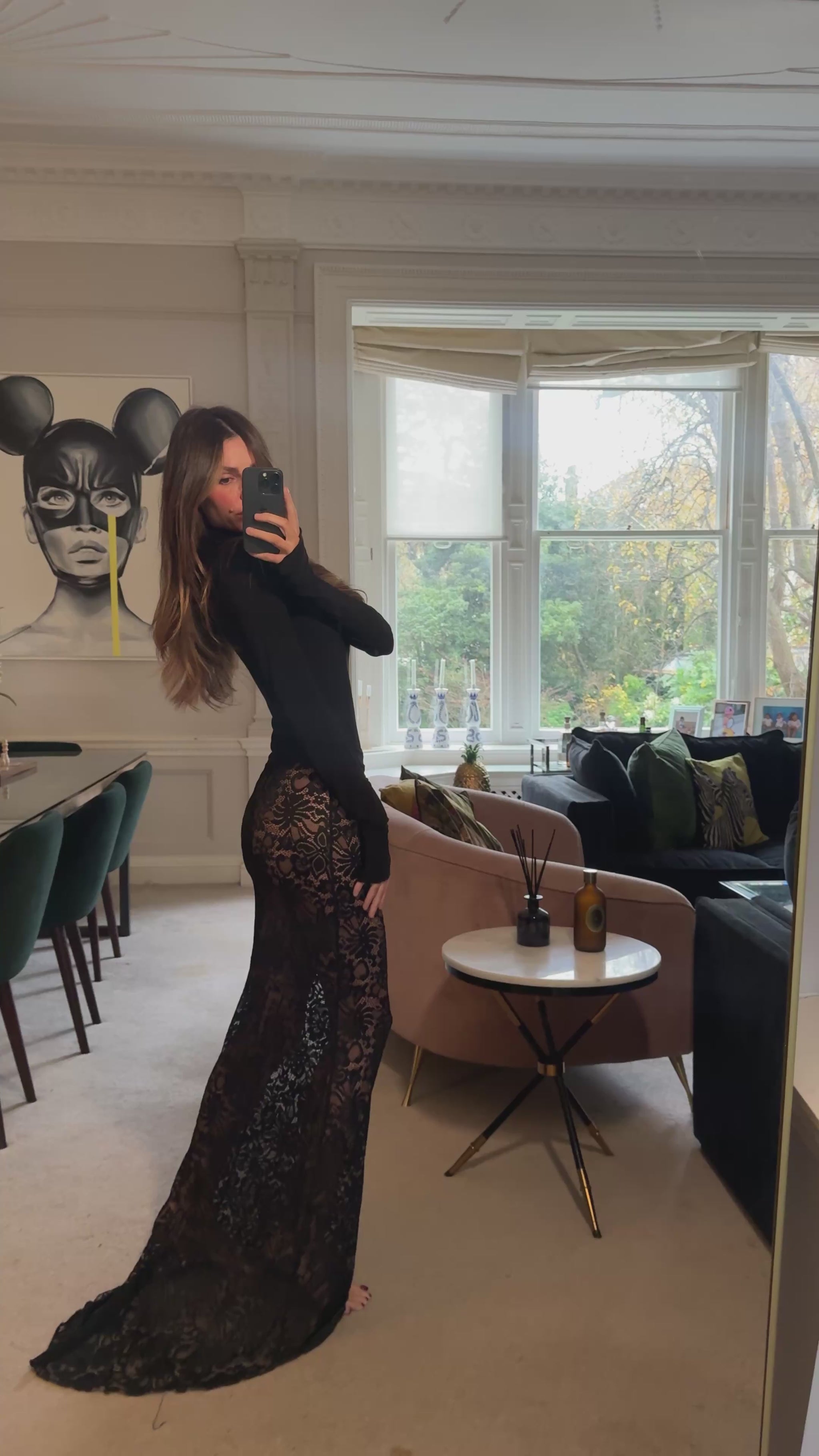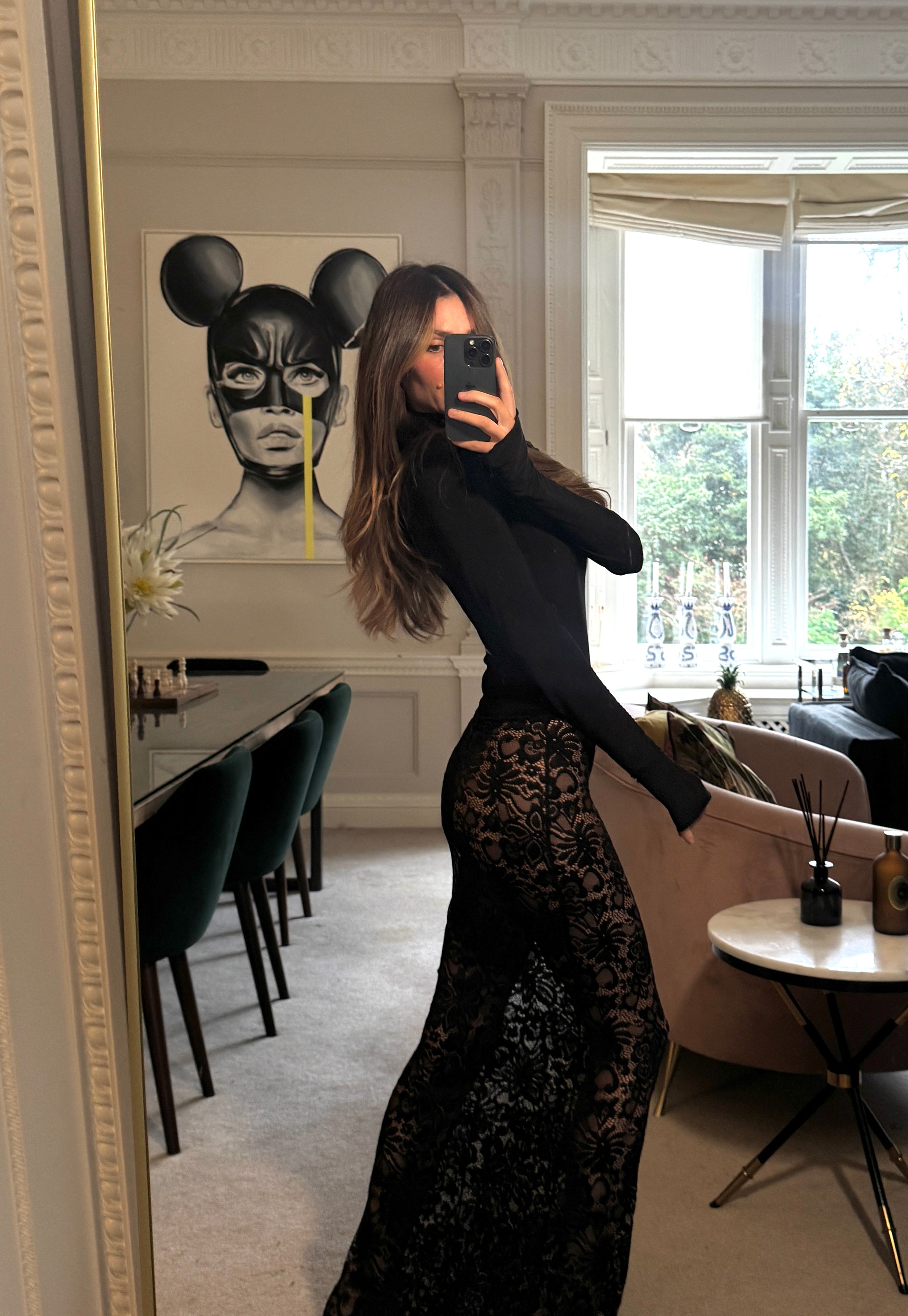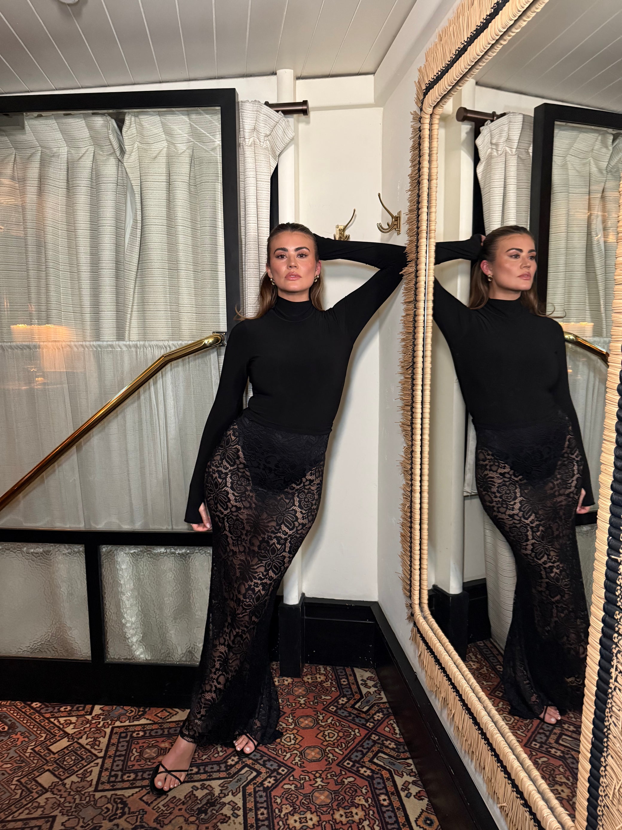 Illusion Lace Maxi Skirt in Black